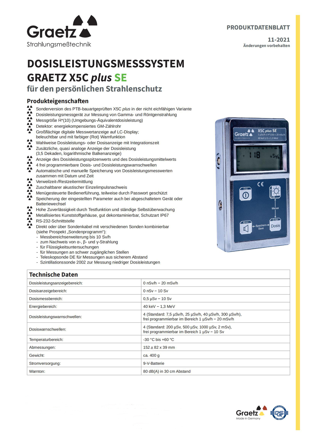 >> 德國GRAETZ X5C plus SE輻射劑量率儀